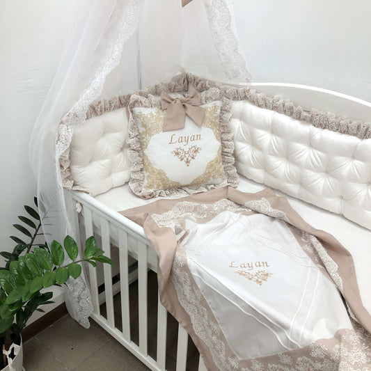 Royal Luxury Personalized Crib Bedding Set "Beige Dream"