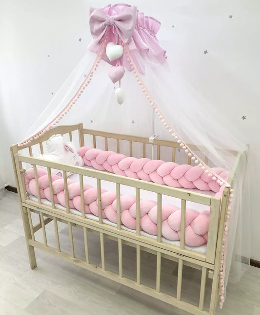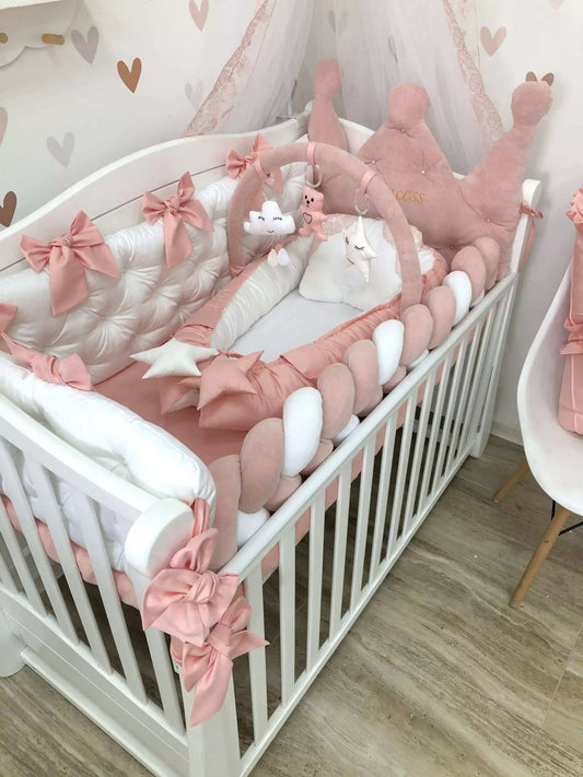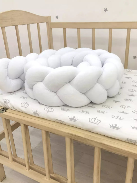 White Baby Bedding Set – Crib Bumper "Crown & Braided"