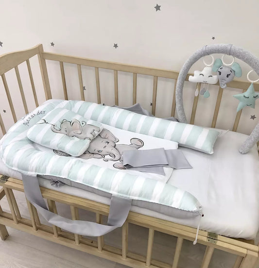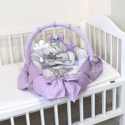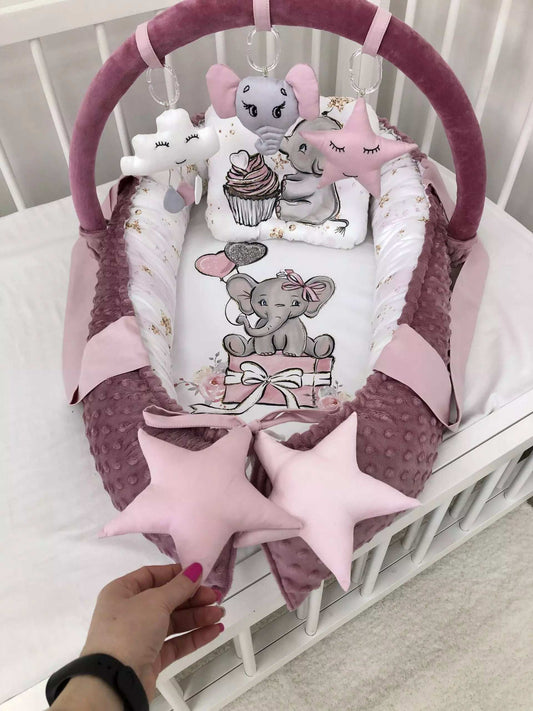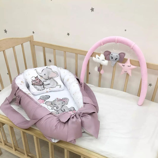 Baby Nest "Tea Rose Elephant" with Bow & Toys