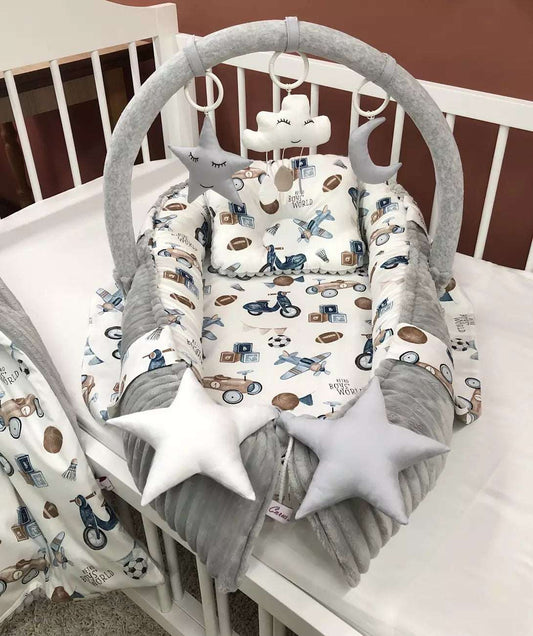 Baby Nest "Blue Lounger" with Comforter & Mini Toys 💙✨
