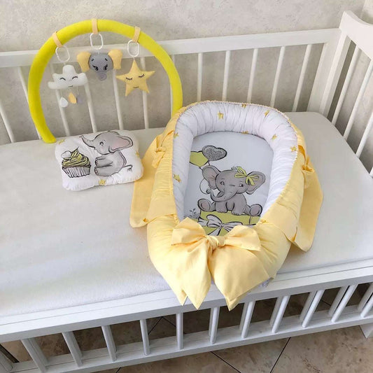 Baby Nest "Yellow Elephant" with Bow & Toys
