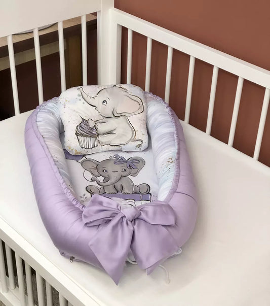 Lilac Baby Nest "Elephant" + Orthopedic Pillow