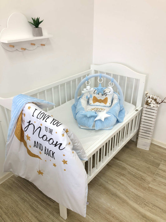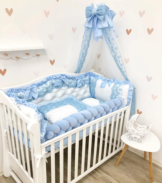 Light Blue & White Personalized Crib Bumper "My Prince"