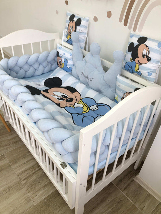 Crib Bedding Set "Mickey Mouse with Blue Braid"