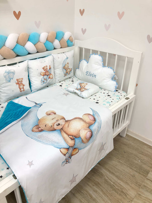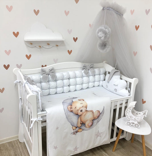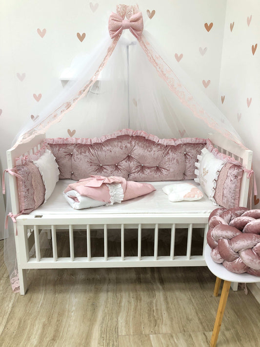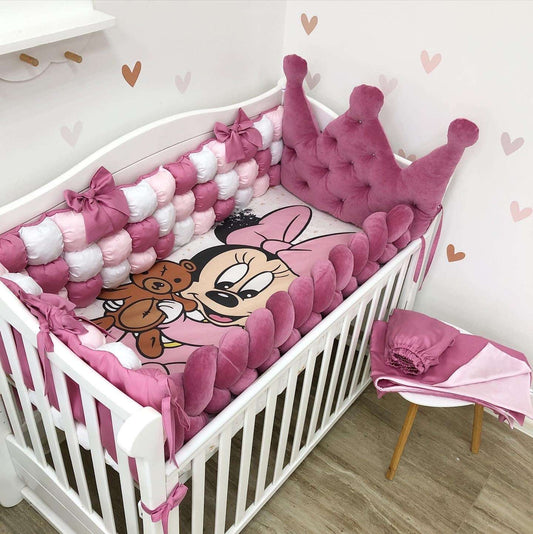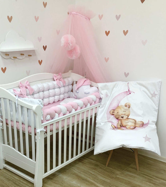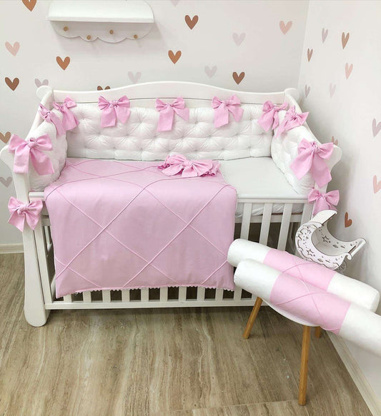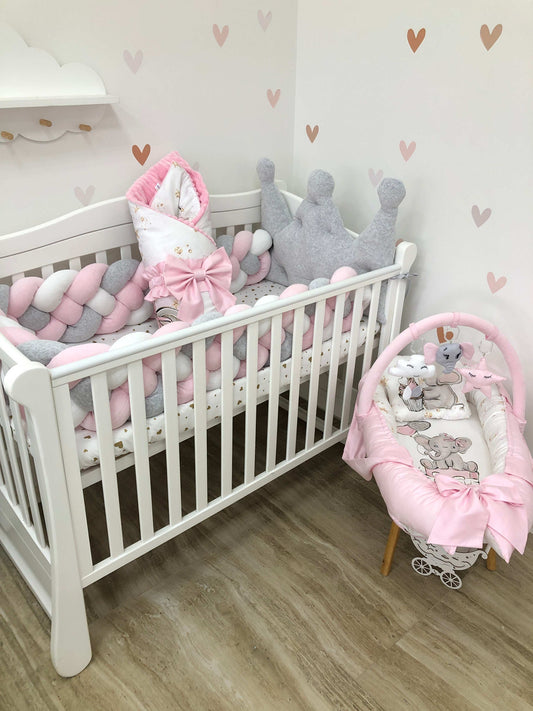Grey-Pink Crib Set "Elephant" – Soft & Stylish Baby Bedding