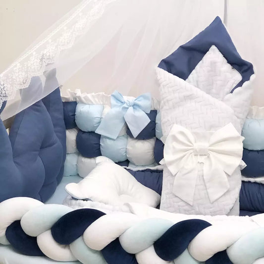 Crib Set “Blue & White Baby Bedding”
