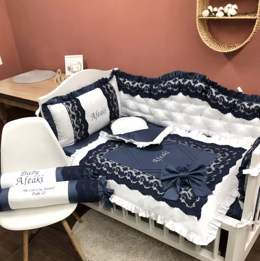 Personalized Crib Set “Navy Blue & White”