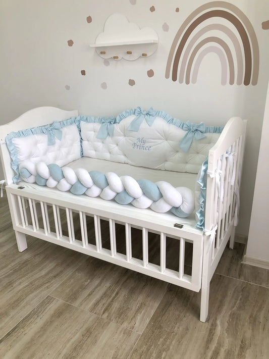 Light Blue & White Personalized Crib Bumper "My Prince"
